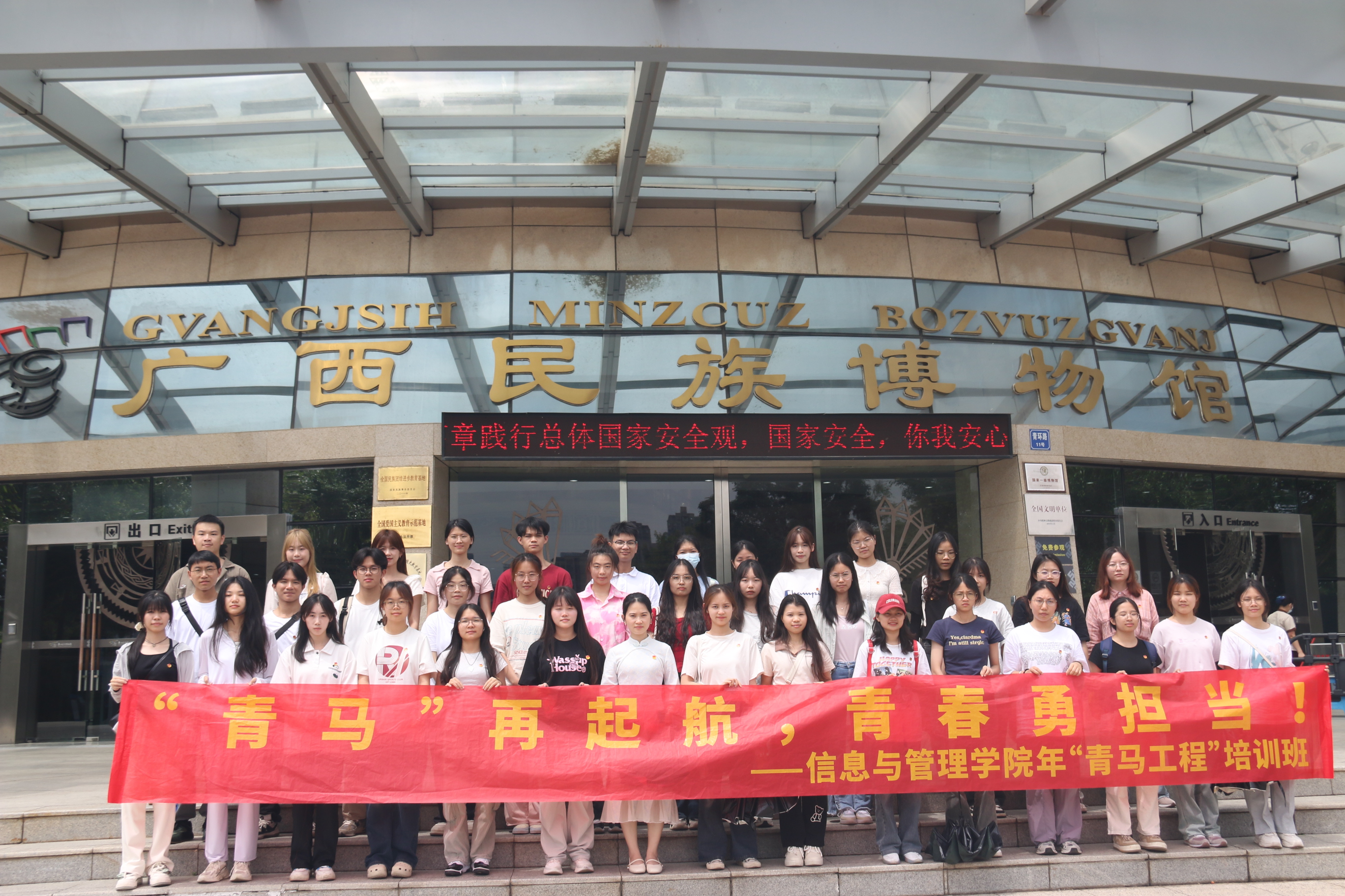接着,学员们来到了广西民族博物馆。广西民族博物馆作为全国民族团结进步教育基地,馆藏丰富,展品涵盖了广西各民族的历史、文化、艺术等多个方面。全体学员在讲解员的引导下,依次参观了壮族、侗族、瑶族等民族的文化展区。